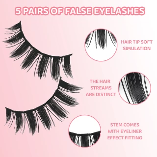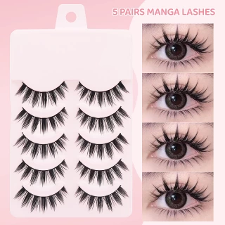 Enhance your eyes with DINGSEN 5 Pairs Manga Lashes – designed for a soft, natural, and wispy anime look. These lightweight false eyelashes add effortless length and volume, perfect for daily wear, cosplay, or special occasions.