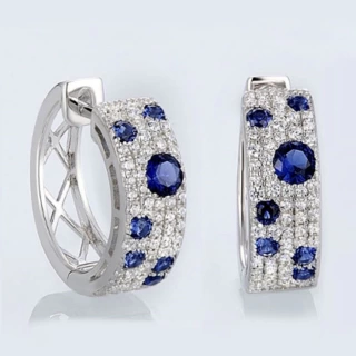 Huitan Luxury Blue Cubic Zirconia Hoop Earrings – Elegant Women’s Jewelry Gift