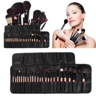 Set of 24 Professional Makeup Brushes with Leather Pouch – Complete Brush Kit
