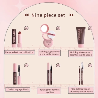 Timeless Radiance Kit: Lipstick, Powder, Mascara & More (9-Piece Set)