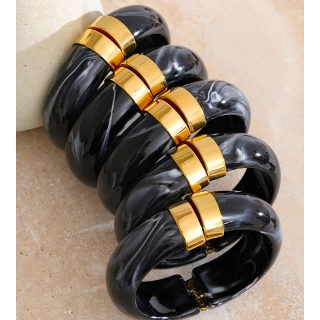 Yhpup 66mm Green Pink Brown Purple Acrylic Thick Bracelet Bangle for Women – Stainless Steel Wrist Jewelry Gift 2025